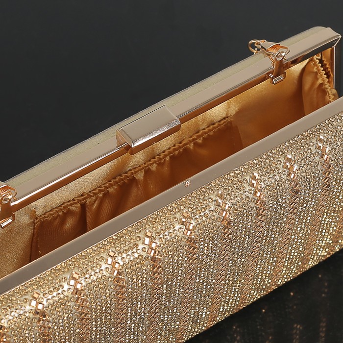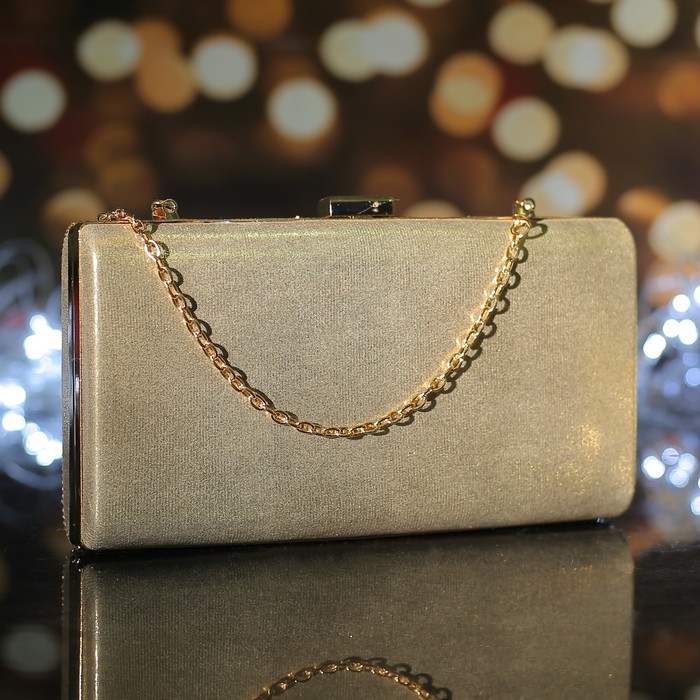 Клатч женский, отдел на фермуаре, длинная цепь, цвет золотой