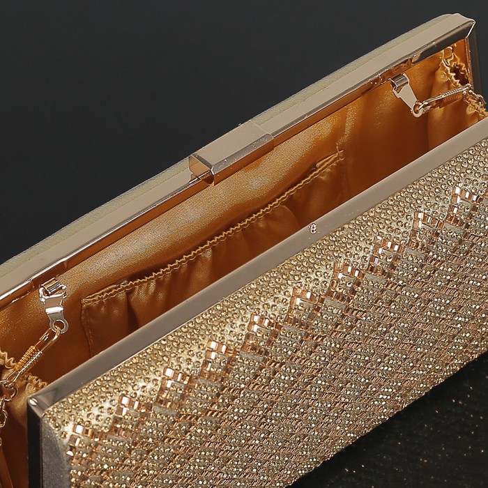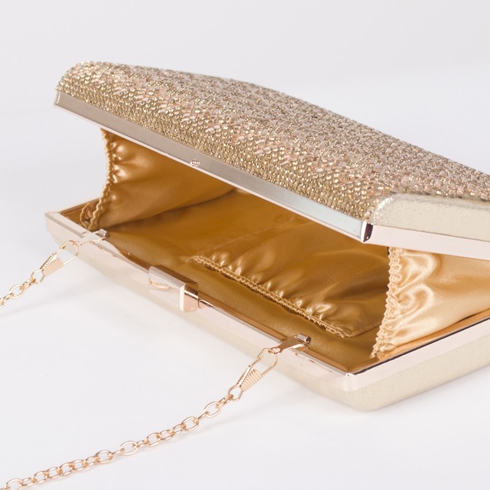 Клатч женский, отдел на фермуаре, длинная цепь, цвет золотой