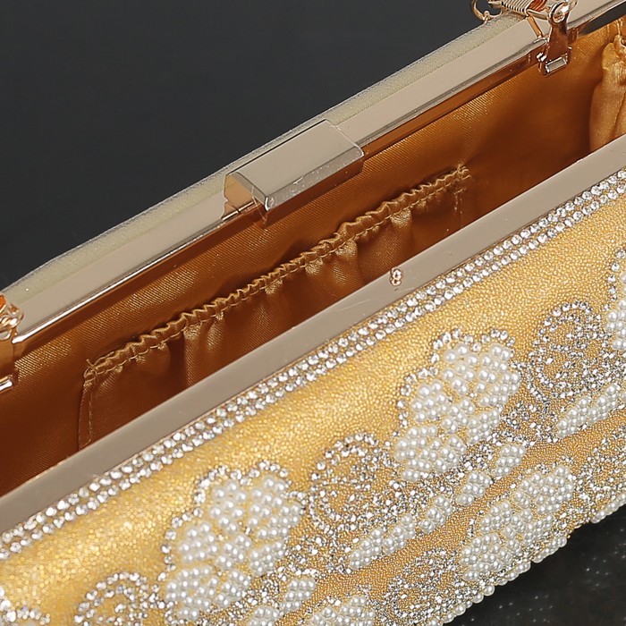 Клатч женский, отдел на фермуаре, длинная цепь, цвет золотой