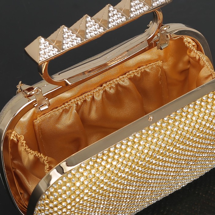 Клатч женский, отдел на фермуаре, длинная цепь, цвет золотой