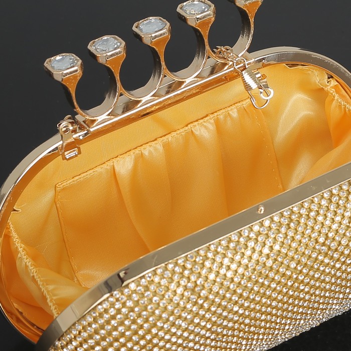 Клатч женский, отдел на фермуаре, длинная цепь, цвет золотой