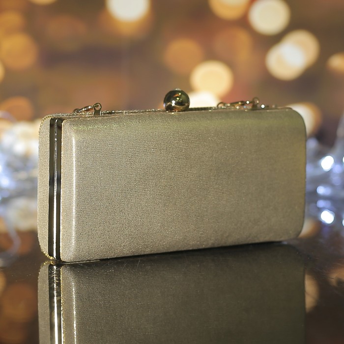 Клатч женский, отдел на фермуаре, длинная цепь, цвет золотой