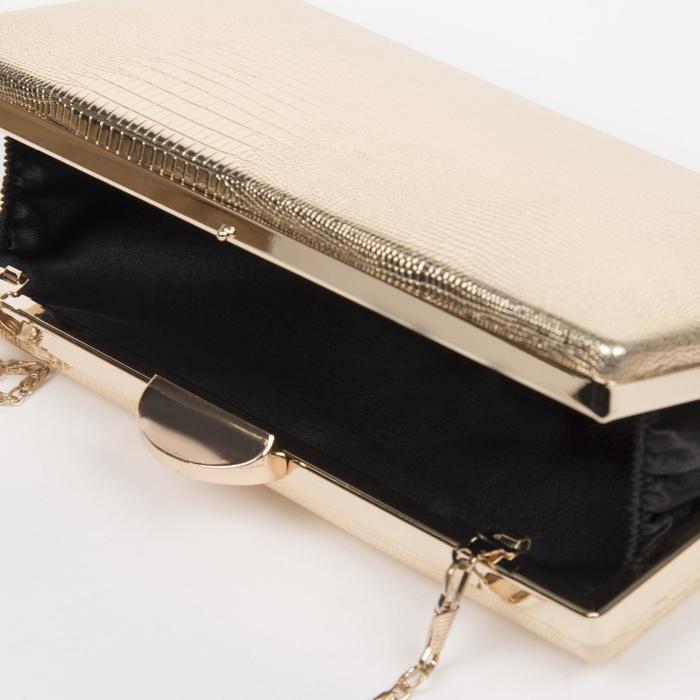 Клатч женский, отдел на фермуаре, длинная цепь, цвет золотой