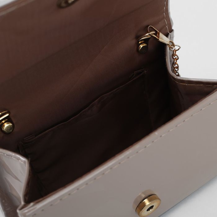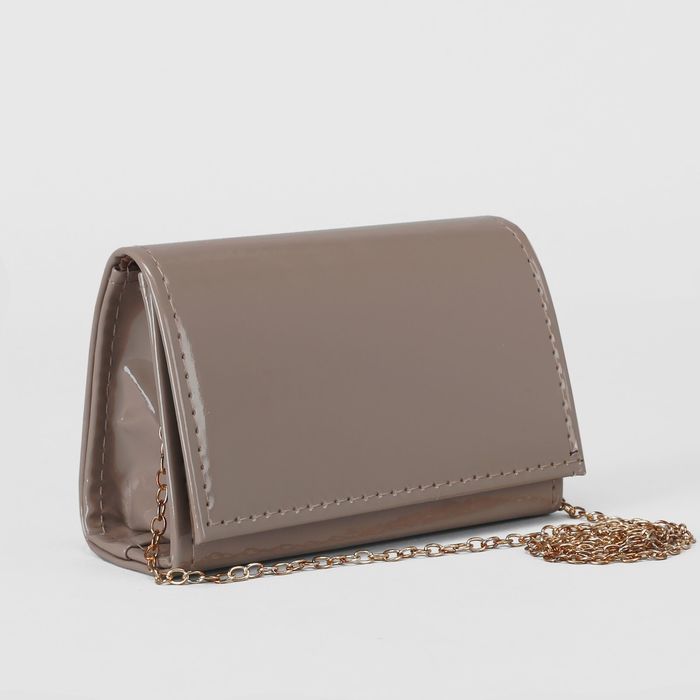 Клатч женский, отдел на клапане, длинная цепь, цвет кофейный