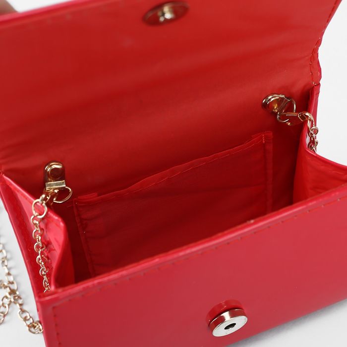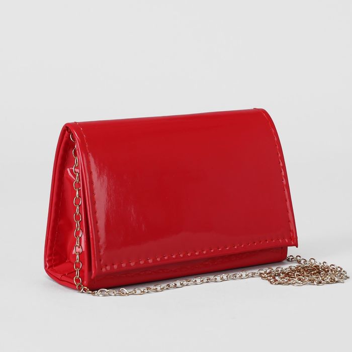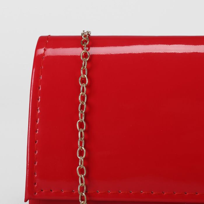 Клатч женский, отдел на клапане, длинная цепь, цвет красный
