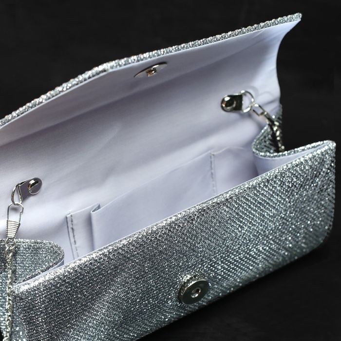 Клатч женский, отдел на клапане, длинная цепь, цвет серый