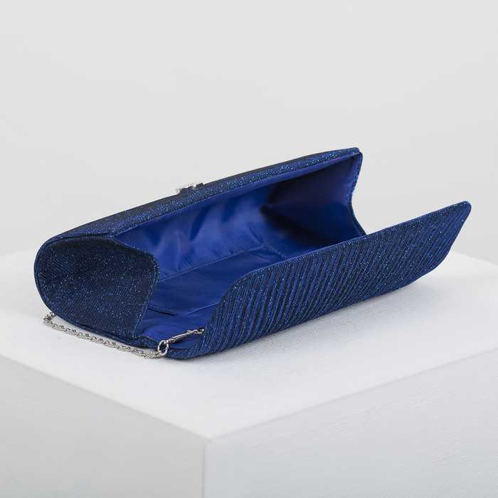 Клатч женский, отдел на клапане, длинная цепь, цвет синий