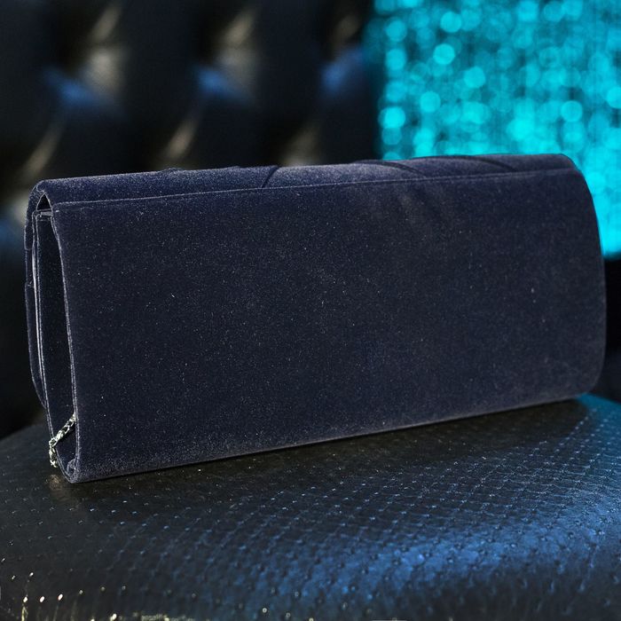 Клатч женский, отдел на клапане, длинная цепь, цвет синий