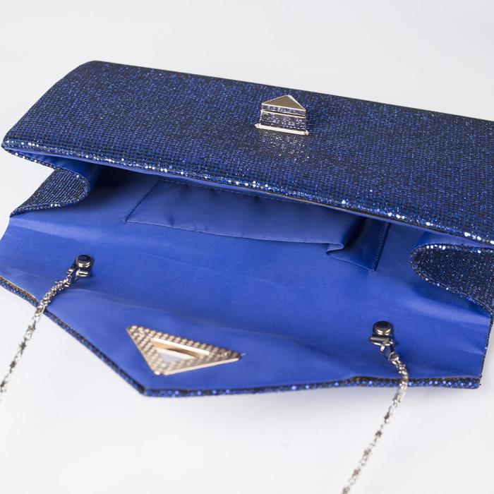 Клатч женский, отдел на клапане, длинная цепь, цвет синий