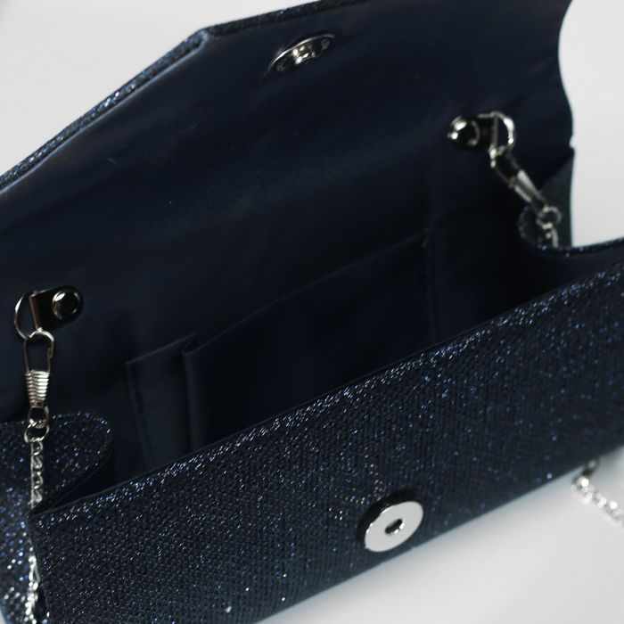 Клатч женский, отдел на клапане, длинная цепь, цвет синий