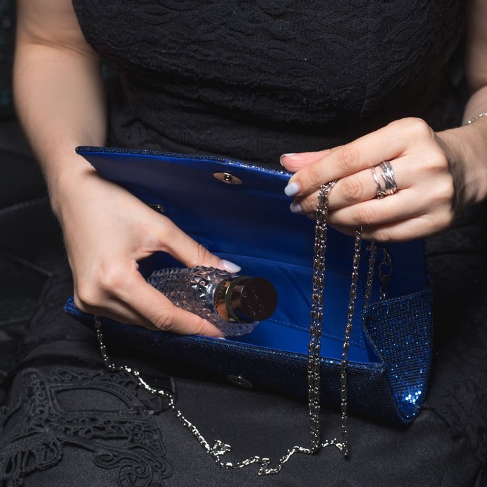 Клатч женский, отдел на клапане, длинная цепь, цвет синий