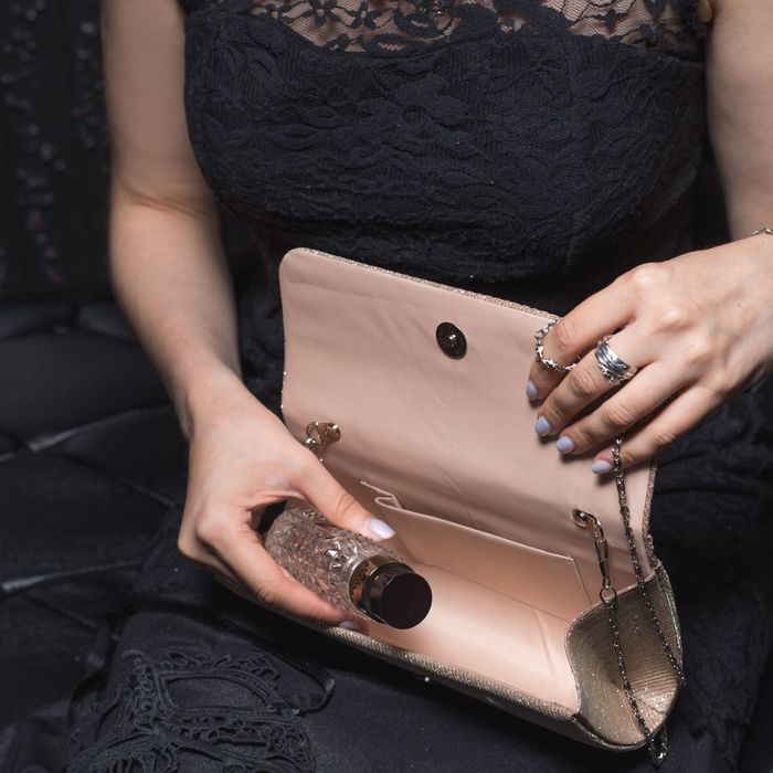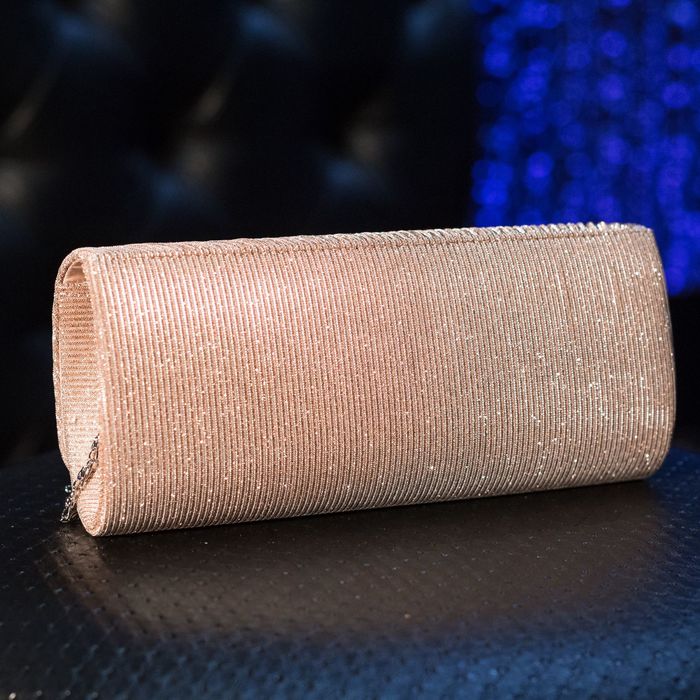 Клатч женский, отдел на клапане, длинная цепь, шампань