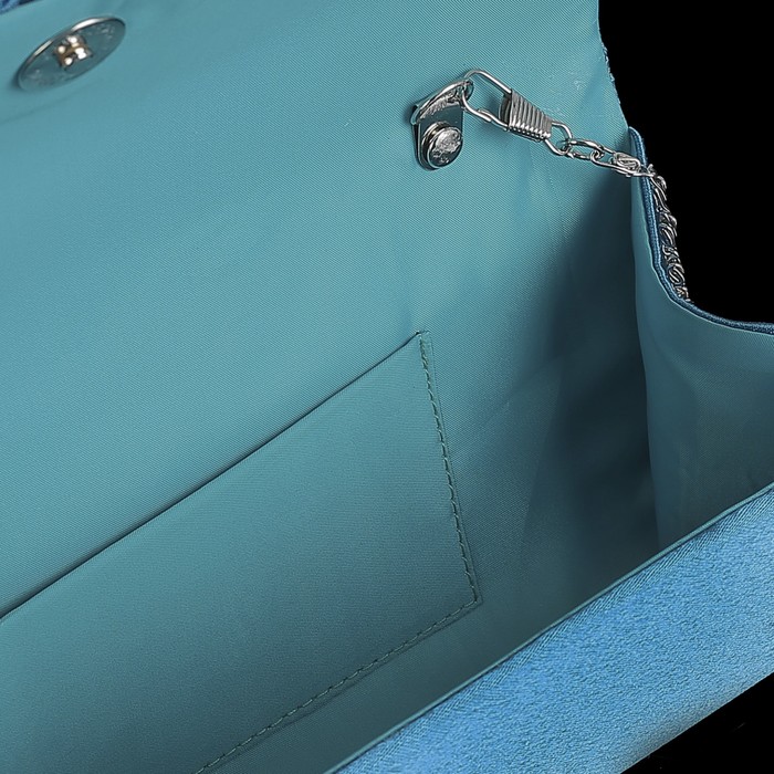 Клатч женский, отдел на магните, длинная цепь, цвет бирюзовый