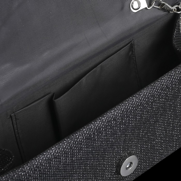 Клатч женский, отдел на магните, длинная цепь, цвет чёрный