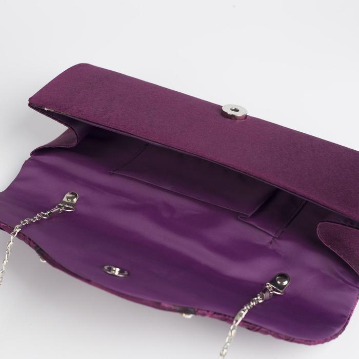 Клатч женский, отдел на магните, длинная цепь, цвет фиолетовый