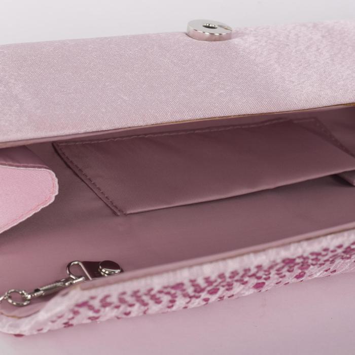 Клатч женский, отдел на магните, длинная цепь, цвет розовый
