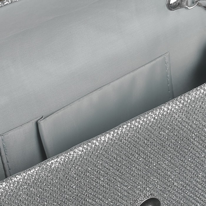 Клатч женский, отдел на магните, длинная цепь, цвет серебристый
