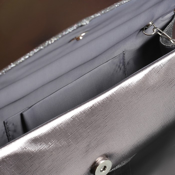 Клатч женский, отдел на магните, длинная цепь, цвет серый