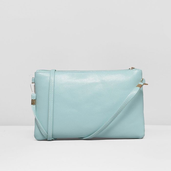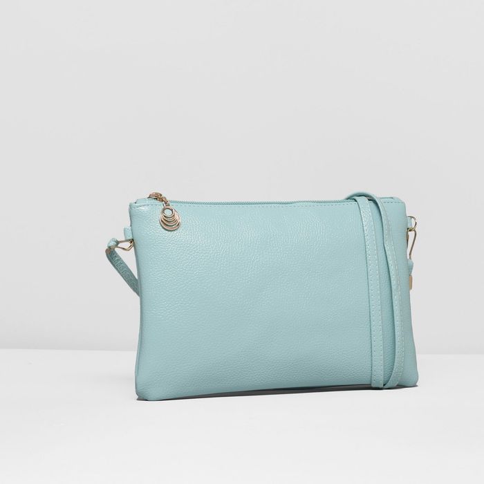 Клатч женский, отдел на молнии, длинный ремень, цвет мятный
