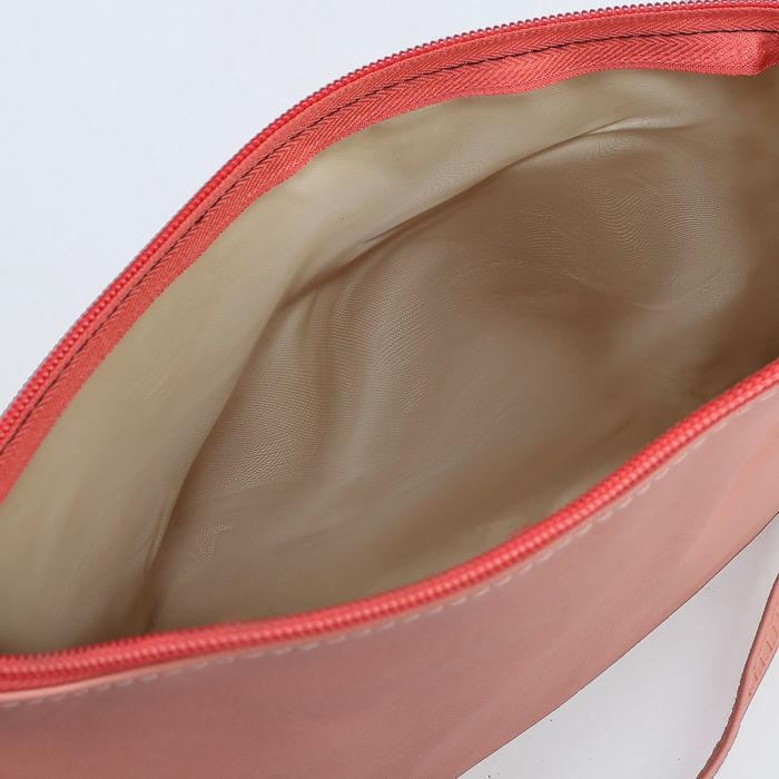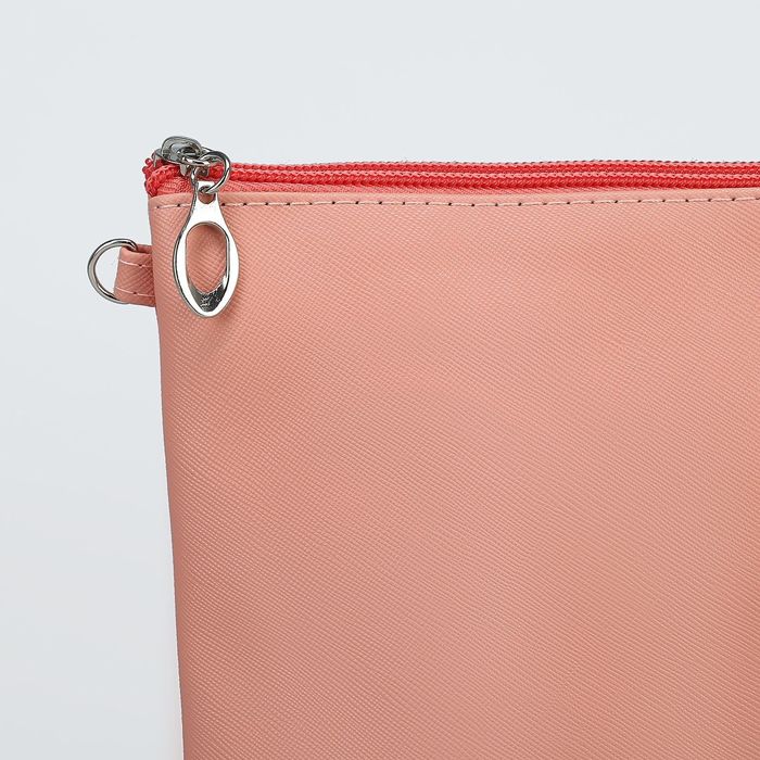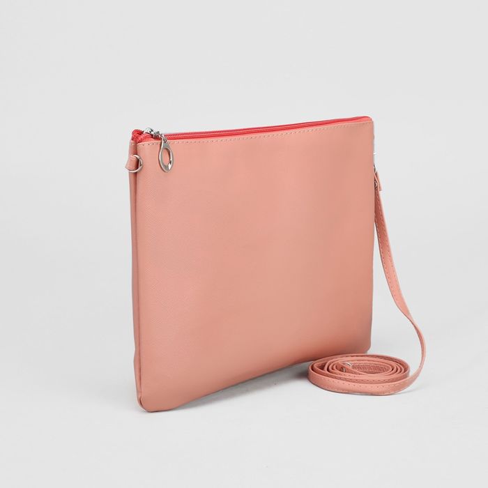 Клатч женский, отдел на молнии, длинный ремень, цвет пудровый