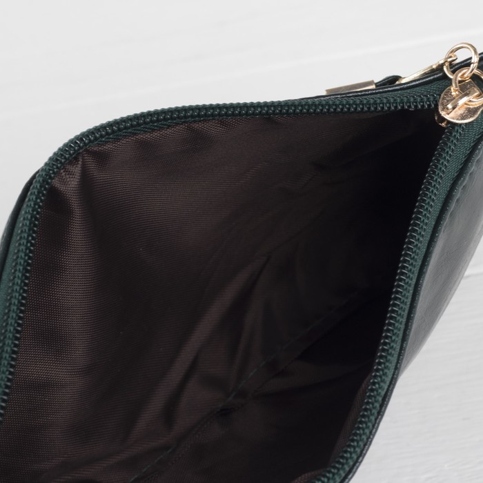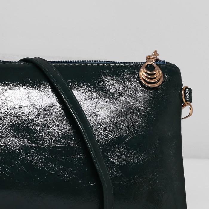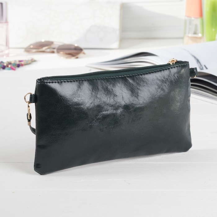 Клатч женский, отдел на молнии, длинный ремень, цвет зелёный