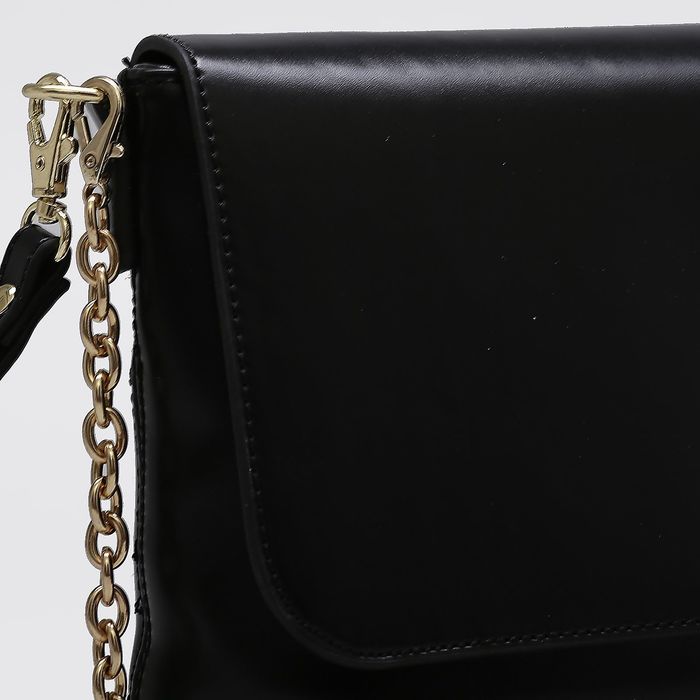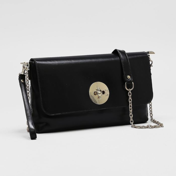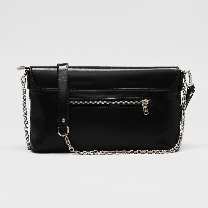 Клатч женский, отдел на молнии, наружный карман, с ручкой, длинная цепь, цвет чёрный