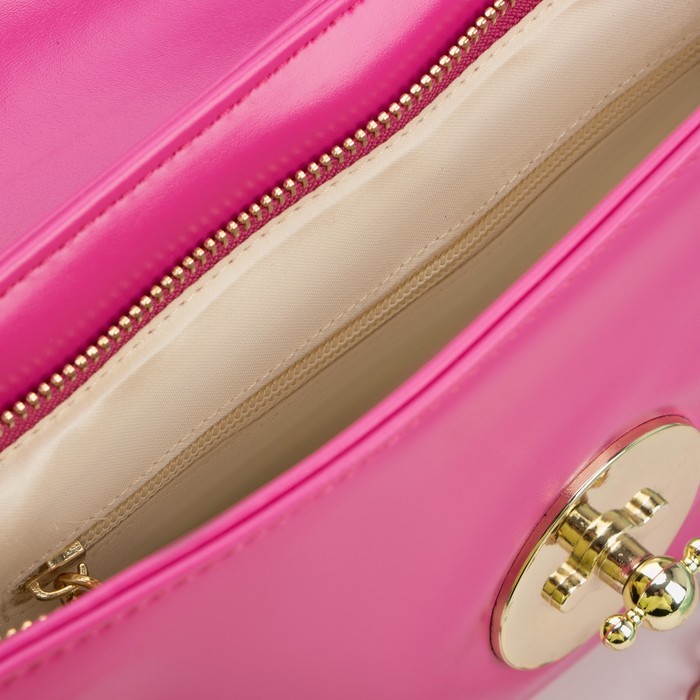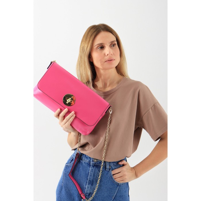 Клатч женский, отдел на молнии, наружный карман, с ручкой, длинная цепь, цвет фуксия