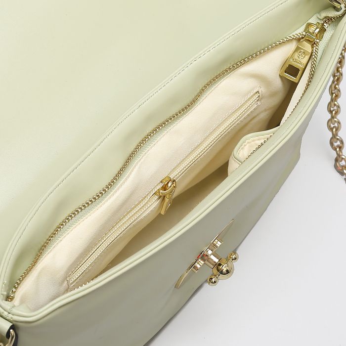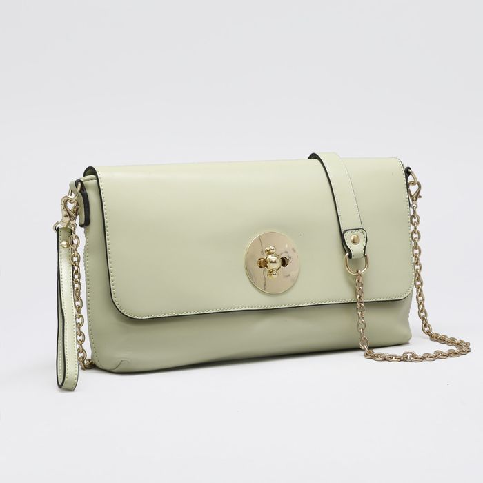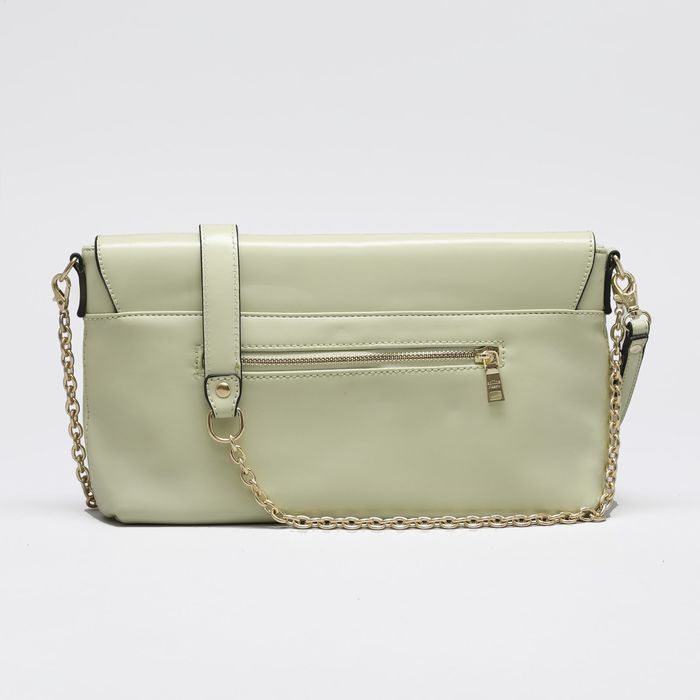 Клатч женский, отдел на молнии, наружный карман, с ручкой, длинная цепь, свет зеленый