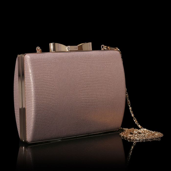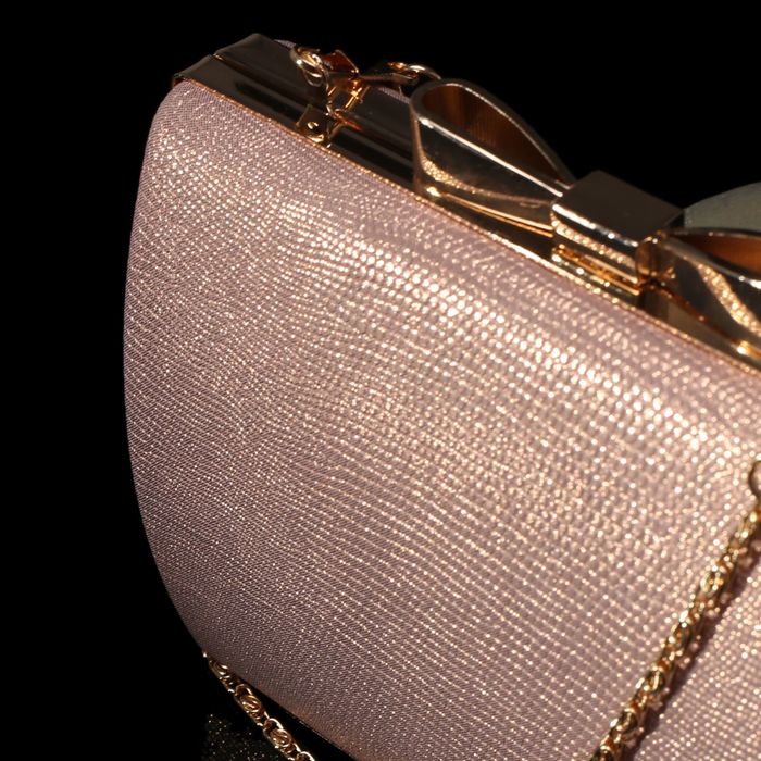 Клатч женский, отдел на рамке, длинная цепь, цвет розовый