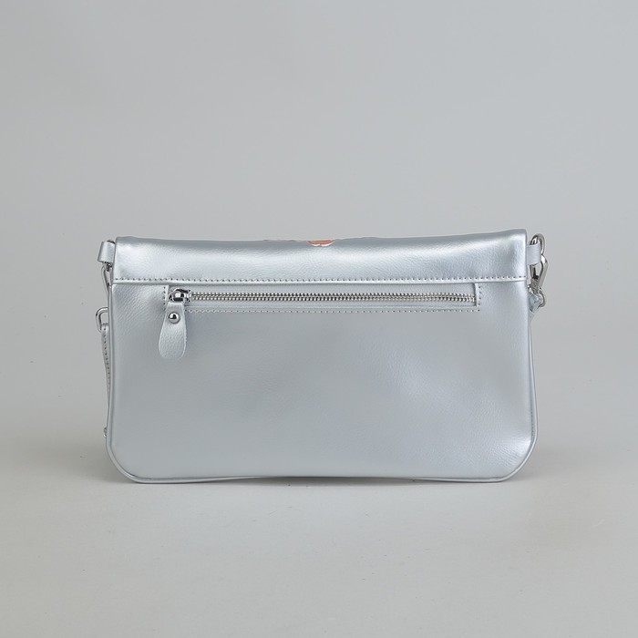 Клатч женский, отдел с перегородкой, 2 наружных кармана, с ручкой, длинный ремень, цвет серебряный