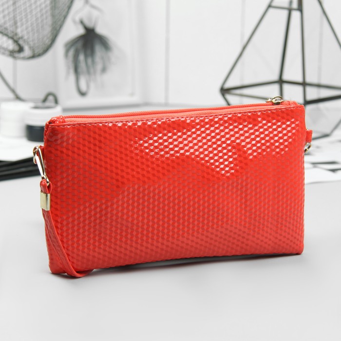 Клатч женский "Шик", отдел на молнии, длинный ремень, цвет коралловый