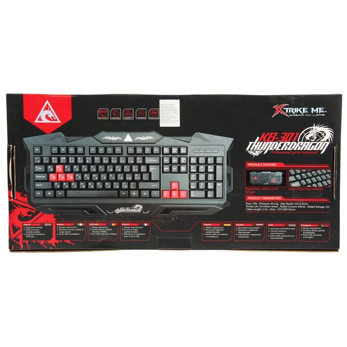 Клавиатура Xtrike Me KB-301, выделенные "↑←↓→" и "WASD" клавиши. — это полноразмерная, функциональная и удобная в использовании модель. Классический вариант, подходящий для домашних компьютеров и работы в офисе.