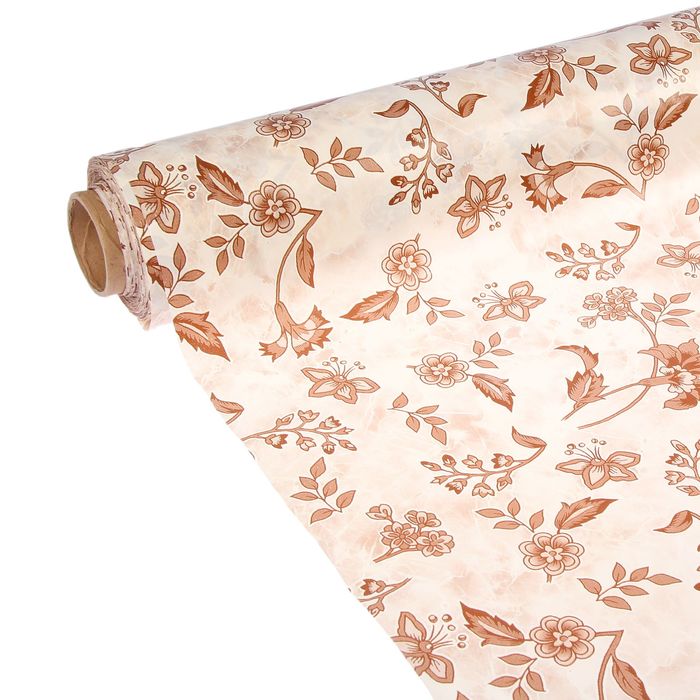 Клеенка столовая на нетканой основе "Цветочный орнамент", рулон 25 м, цвет бежевый