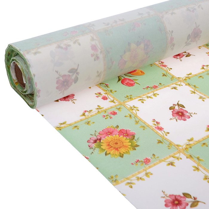 Клеенка столовая на нетканой основе, ширина 128±2 см "Фьюжн", рулон 25 м, цвет зеленый