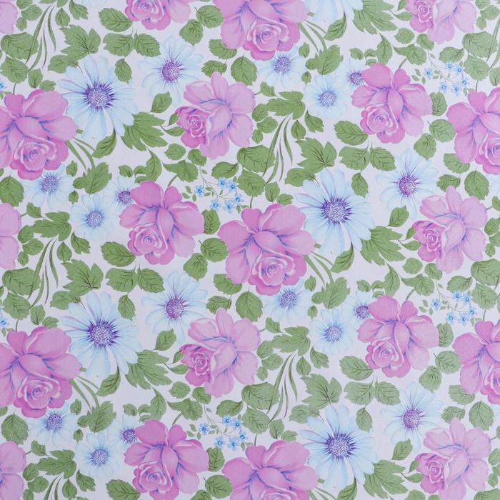 Клеенка столовая на ткани, ширина 125 см "Цветы", рулон 25 м