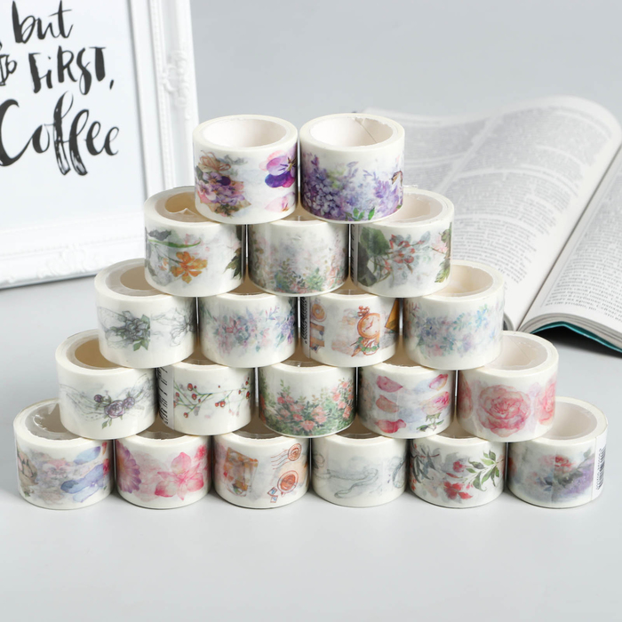 Клейкая лента декоративная бумажная "Прованс цветы" ширина 3 см длина 5 метров МИКС
