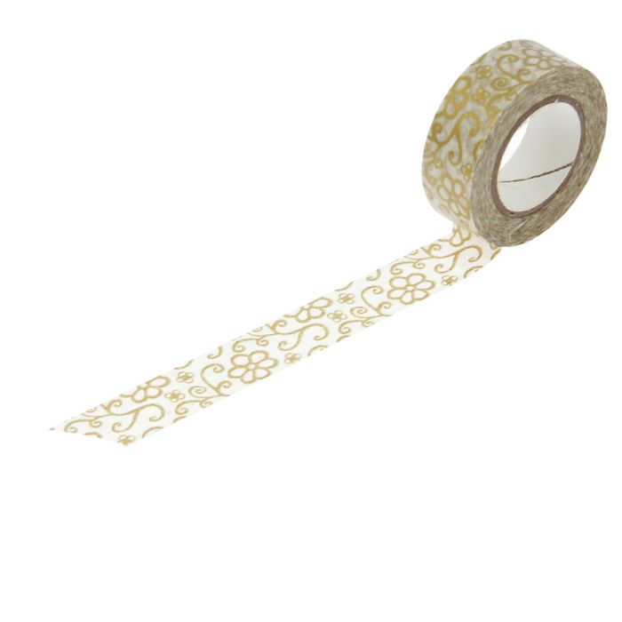 Клейкая лента декоративная бумажная "Золотистый узор" ширина 1,5 см, длина 5 метров МИКС