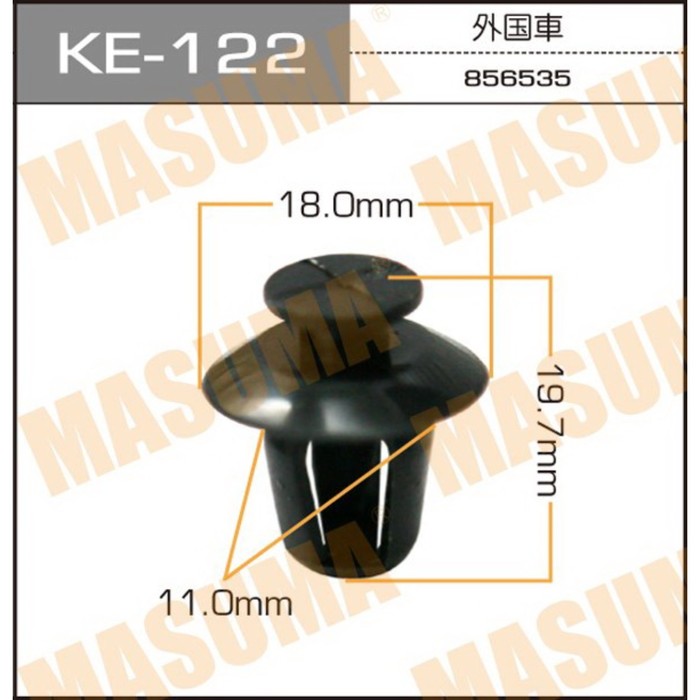 Клипсы Masuma — это детали, с помощью которых крепятся различные облицовочные элементы обшивки автомобиля, подкрылок, брызговиков, бамперов, холдингов и т. д. Решение производителей автомобилей использовать пластиковые крепления вместо металлических позволило снизить массу автомобиля, облегчить процесс снятия деталей.