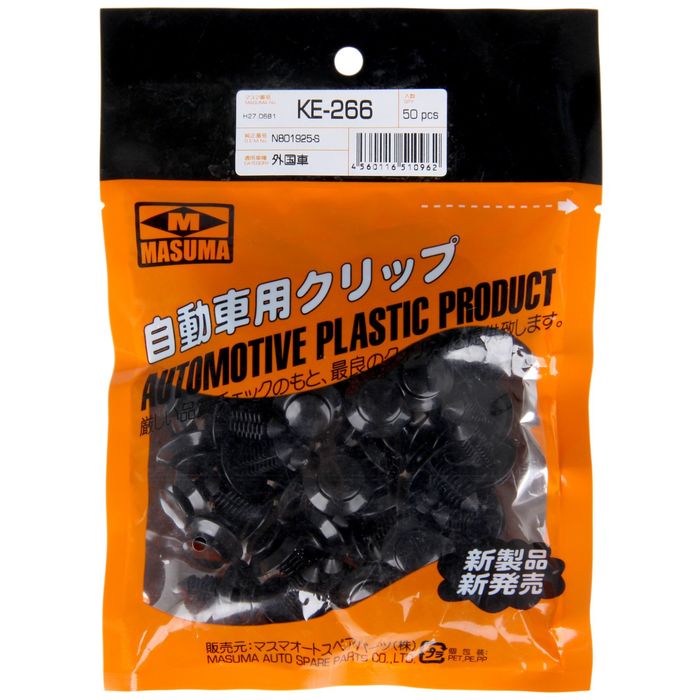 Клипсы Masuma — это детали, с помощью которых крепятся различные облицовочные элементы обшивки автомобиля, подкрылок, брызговиков, бамперов, холдингов и т. д. Решение производителей автомобилей использовать пластиковые крепления вместо металлических позволило снизить массу автомобиля, облегчить процесс снятия деталей.
