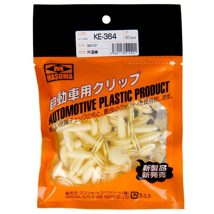 Клипсы Masuma — это детали, с помощью которых крепятся различные облицовочные элементы обшивки автомобиля, подкрылок, брызговиков, бамперов, холдингов и т. д. Решение производителей автомобилей использовать пластиковые крепления вместо металлических позволило снизить массу автомобиля, облегчить процесс снятия деталей.