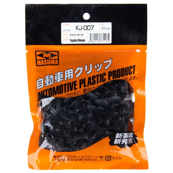 Клипсы Masuma — это детали, с помощью которых крепятся различные облицовочные элементы обшивки автомобиля, подкрылок, брызговиков, бамперов, холдингов и т. д. Решение производителей автомобилей использовать пластиковые крепления вместо металлических позволило снизить массу автомобиля, облегчить процесс снятия деталей.