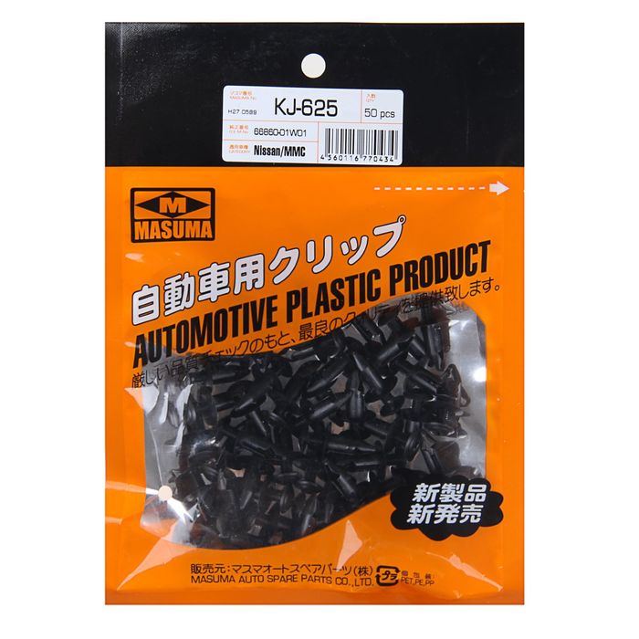 Клипсы Masuma — это детали, с помощью которых крепятся различные облицовочные элементы обшивки автомобиля, подкрылок, брызговиков, бамперов, холдингов и т. д. Решение производителей автомобилей использовать пластиковые крепления вместо металлических позволило снизить массу автомобиля, облегчить процесс снятия деталей.
