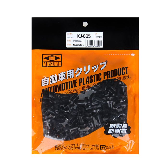 Клипсы Masuma — это детали, с помощью которых крепятся различные облицовочные элементы обшивки автомобиля, подкрылок, брызговиков, бамперов, холдингов и т. д. Решение производителей автомобилей использовать пластиковые крепления вместо металлических позволило снизить массу автомобиля, облегчить процесс снятия деталей.