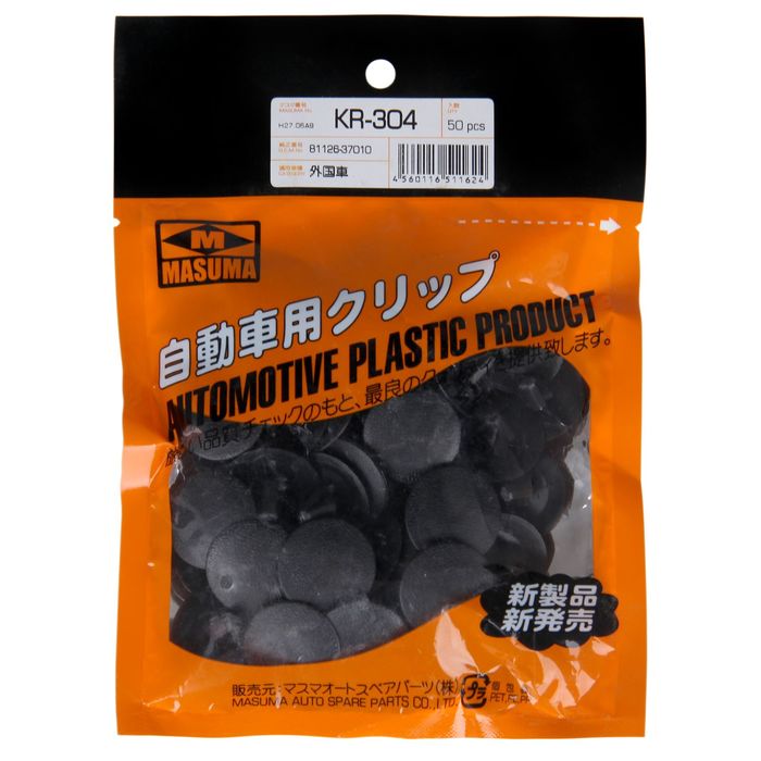 Клипсы Masuma — это детали, с помощью которых крепятся различные облицовочные элементы обшивки автомобиля, подкрылок, брызговиков, бамперов, холдингов и т. д. Решение производителей автомобилей использовать пластиковые крепления вместо металлических позволило снизить массу автомобиля, облегчить процесс снятия деталей.