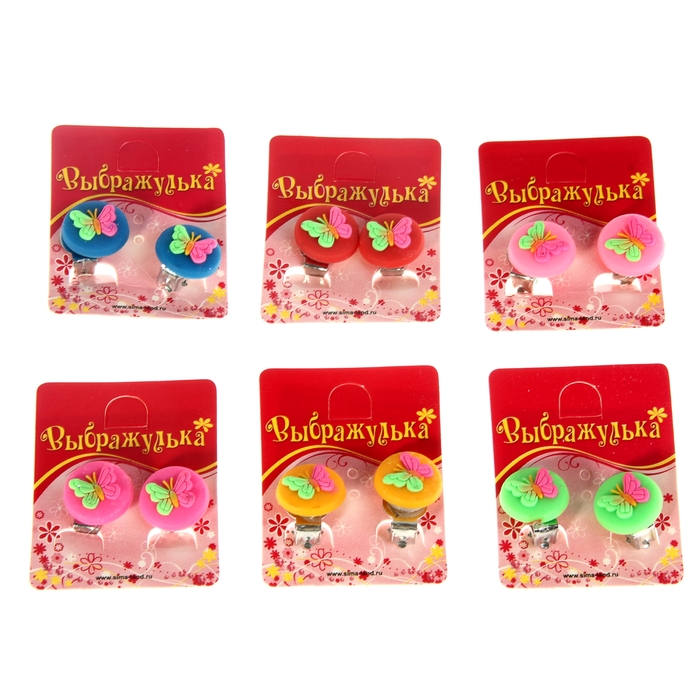 Клипсы детские "Выбражулька", бабочка на круге, цвет МИКС
