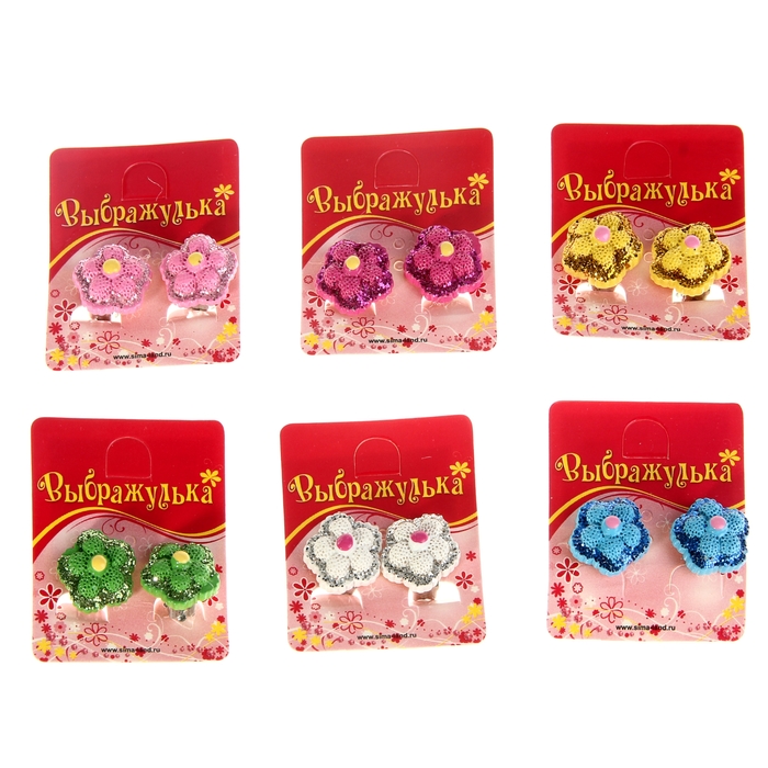 Клипсы детские "Выбражулька" цветок блестка, цвет МИКС