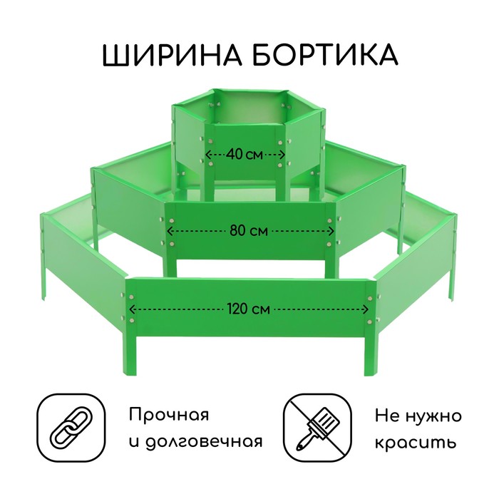 Клумба оцинкованная, 3 яруса, d=60-80-100 см, h=45 см, зелёная