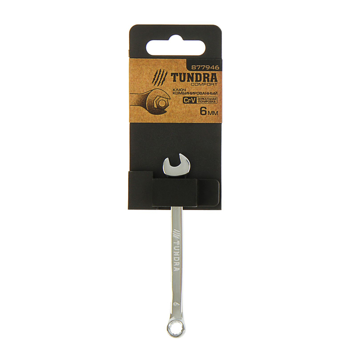Ключ гаечный комбинированный TUNDRA comfort, CrV, полированный, 6 мм