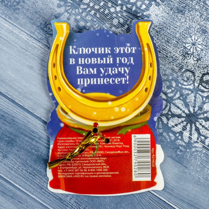 Ключ новогодний "К удаче", 6,5 х 10 см