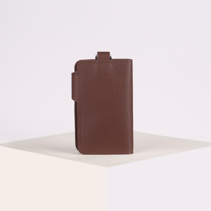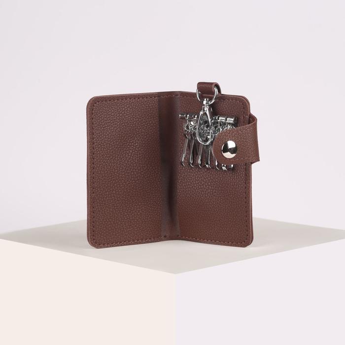 Ключница, 2 отдела, 7 карабинов, на кнопке, цвет кофе